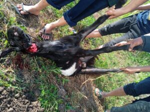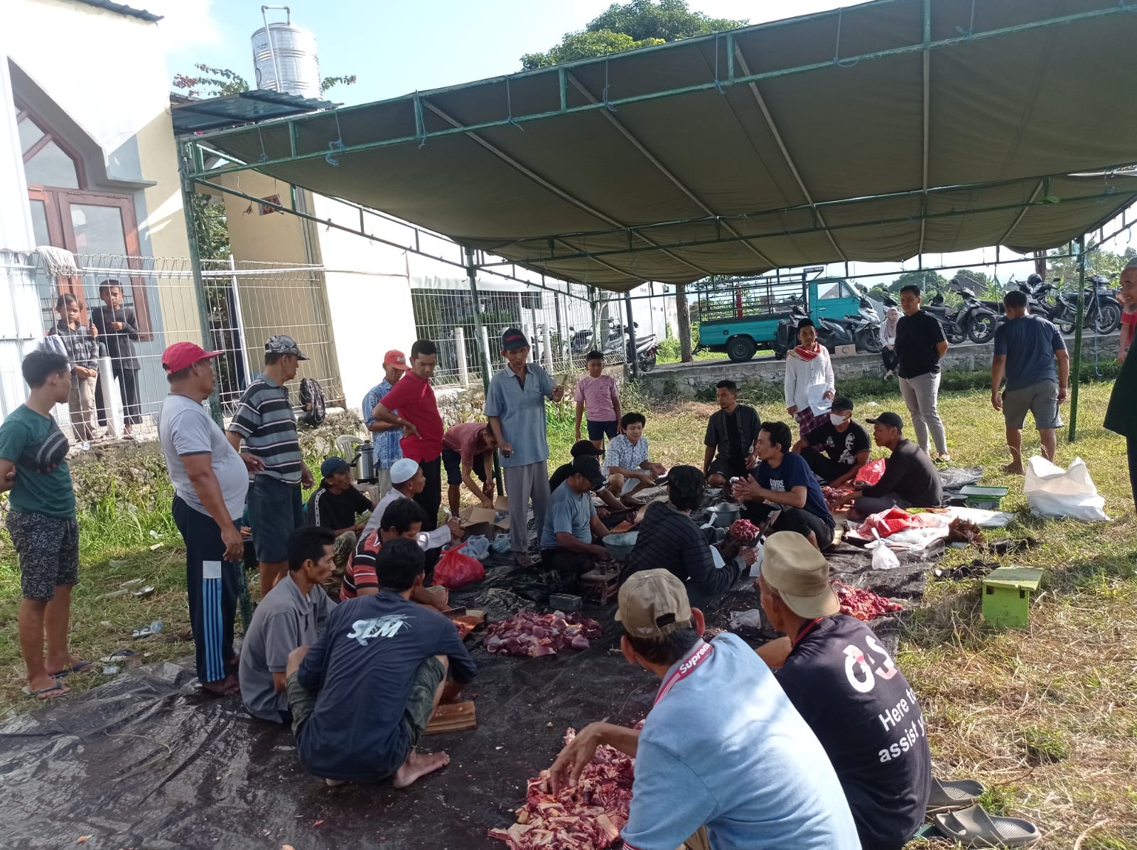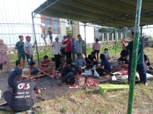 Setelah sholat Ied diadakan penyembelihan hewan qurban berupa 2 ekor sapi dan 1 ekor kambing.