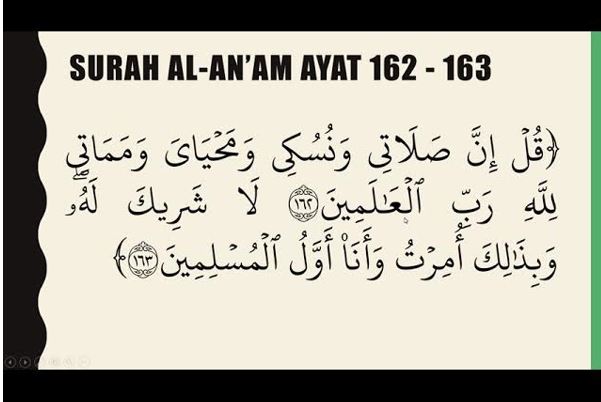 “Tidak ada sekutu bagi-Nya. Itulah yang diperintahkan kepadaku. Aku adalah orang yang pertama dalam kelompok orang muslim.” (Q.S. Al-An’ām : 163)